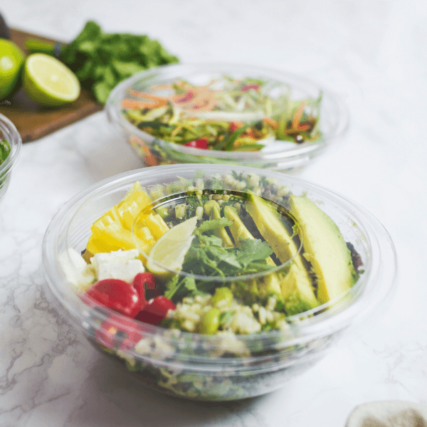 Wide flat clear lid. Vegware's Bon Appetit bowls are a unique mix & match range for the ultimate in style and versatility. A panoramic view of your foodie fuel. Vegware's patented lid fits either the paper or clear PLA Bon Appetit bowls. Great seal. Made from PLA, a renewable material made from plants. Clear for visibility. Award-winning quality by Vegware, made from plants. Commercially compostable where accepted.