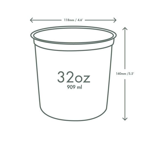 Versatile round deli container. One flat lid fits all sizes, for a great seal and easy stacking. Large cold salads, or family portions from the deli counter. Made from PLA, a renewable material made from plants. Clear for visibility. Award-winning quality by Vegware, made from plants. Commercially compostable where accepted.