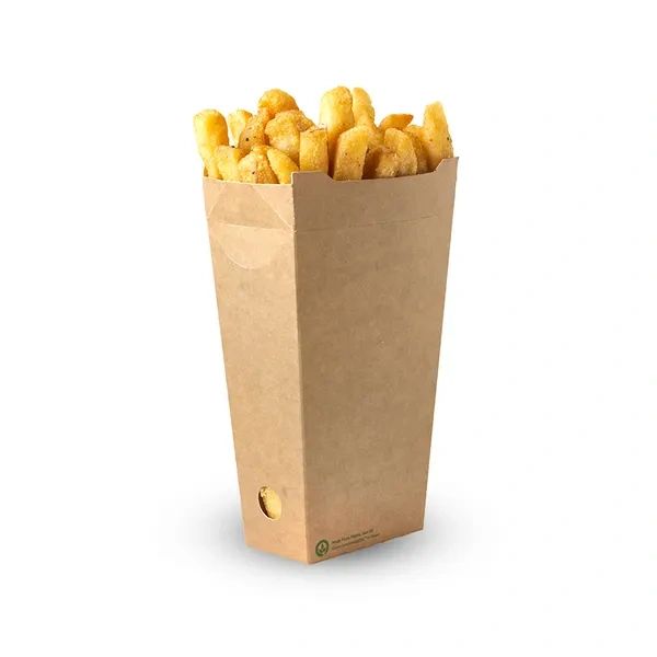 Keep chips fresh and crispy with this Large Enclosed BioBoard Chip Box. Designed for secure takeaway, the self-closing lid protects food during transit while preventing spills in takeaway bags. Ventilation holes ensure steam escapes, stopping chips from becoming soggy.