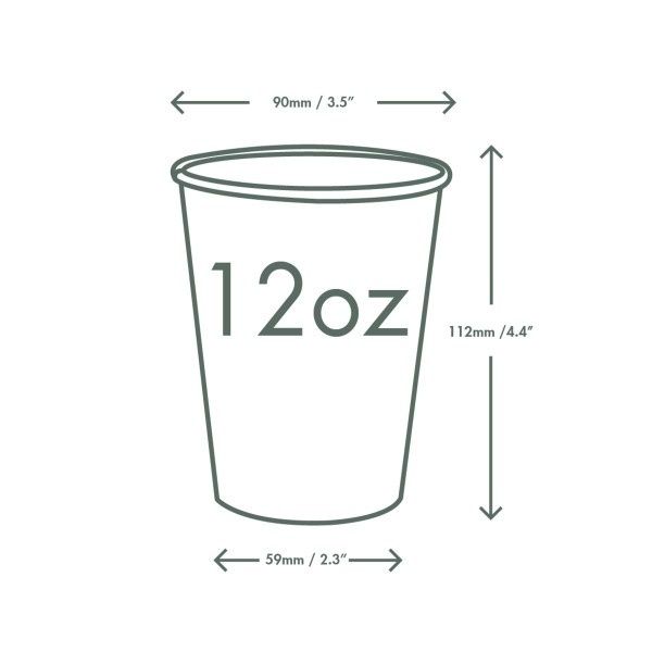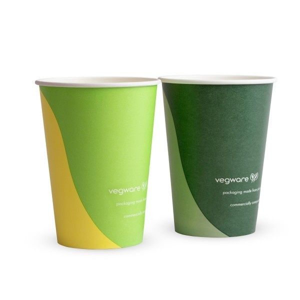 New 12oz colourful paper cold cup. Quench your thirst with a crisp, refreshing beverage. Paper cup, lined with plant-based, renewable PLA. Verdant greens and bold yellow. These cold cups are citrus chic. Award-winning quality by Vegware, made from plants. Designed for industrial composting, made from recyclable materials.