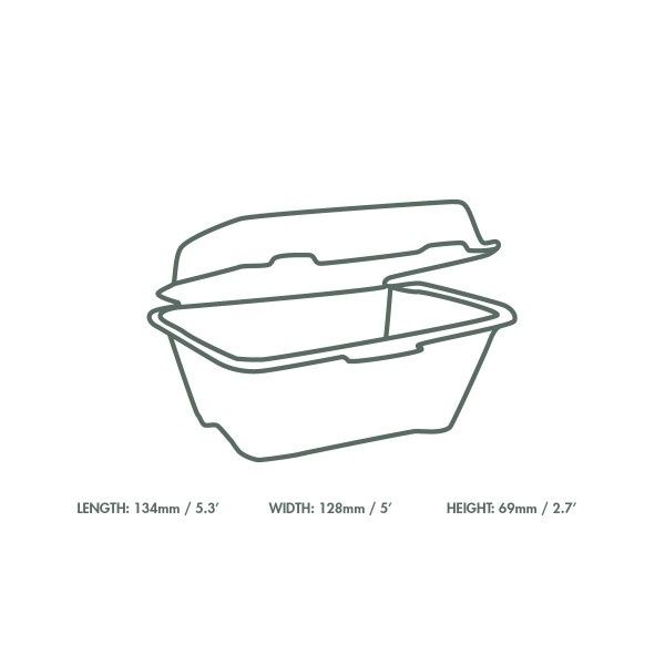 Vegware's best-selling bagasse burger box now in a smaller size. Perfect for kids' meals, budget burgers and side dishes. Our moulded fibre uses reclaimed natural materials such as sugarcane, bamboo or wood pulp. Stylish white. Award-winning quality by Vegware, made from plants. Made from recyclable materials.