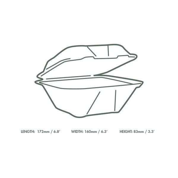 A compact square clamshell designed for reliable takeaway service, suitable for both hot and cold food. Its structure helps prevent condensation build-up, keeping food crisp during transport.