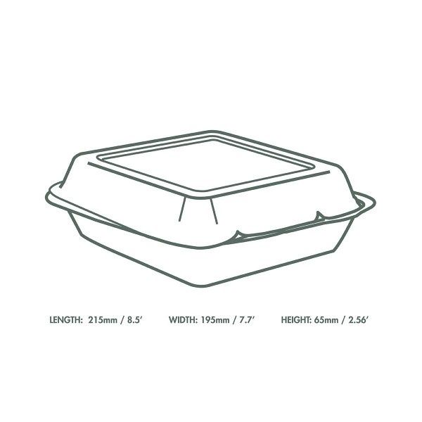 Practical and stylish clamshell. Doesn't trap condensation, so hot food stays crispy. For hot or cold food to go - street food, curries, salads, or fried treats. Our moulded fibre uses reclaimed natural materials such as sugarcane, bamboo or wood pulp. Stylish white. Award-winning quality by Vegware, made from plants. Made from recyclable materials.