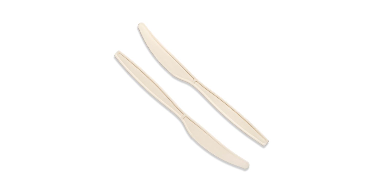 A 190mm disposable knife made from renewable cornstarch material, offering a practical alternative to conventional plastic cutlery. Designed for convenience where washing up is not practical.