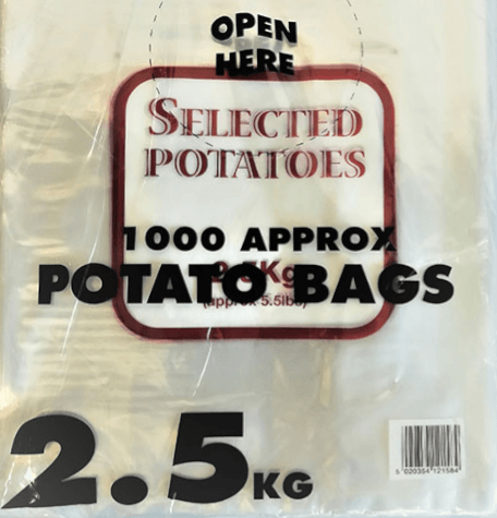 Our Potato Bags are the ideal choice for storing and showcasing your potatoes in a professional and appealing manner. These preprinted “Selected Potatoes 2.5kg /5.5lb” Potato Bags Red are a 100% recyclable poly bag that are ready to go out of the box.