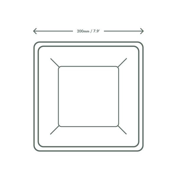 Stylish square plate. Great for hot or cold, and sturdy enough to load up with food. Our moulded fibre uses reclaimed natural materials such as sugarcane, bamboo or wood pulp. Sleek white, embossed with Vegware. Award-winning quality by Vegware, made from plants. Made from recyclable materials.
