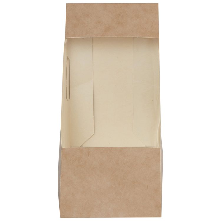 Made from kraft paperboard with a clear cellulose window, these wedges offer excellent visibility of your products while remaining fully compostable in commercial facilities. The natural kraft finish adds a rustic, eco-conscious touch that complements any food display.