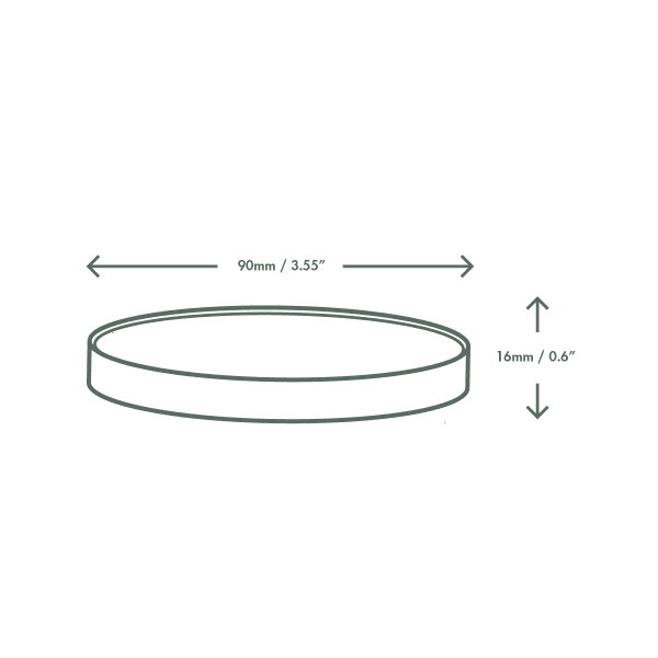 A flat paper lid designed to fit Vegware 90-Series soup containers, suitable for both hot and cold food-to-go. The secure fit supports safe transport while maintaining a clean presentation.